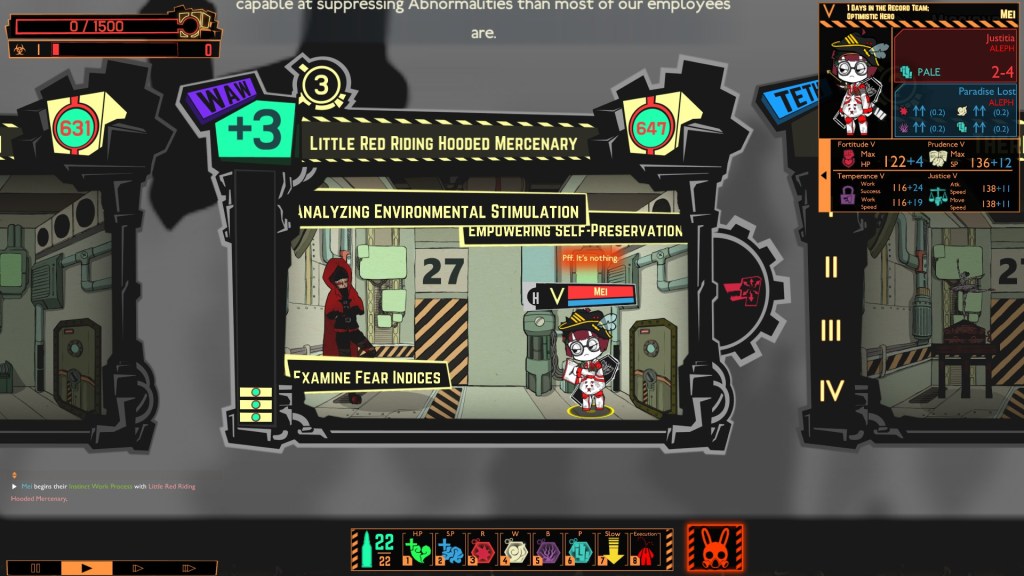 1. You get a new abnormality—some new, unknown monster that you’ll have to interact with, usually by trial-and-error, to discover how to take care of it without it breaking out of its cell and cutting through your employees like a Cronenbergian lawnmower.