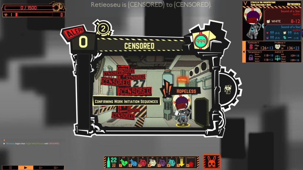 1. Not all abnormalities are created equal.  The game starts you off nice and easy with green ‘Zayin’ abnormalities, some of whom are actually friendly and helpful.  But, as you progress, you’ll find abnormalities with greater danger ratings, up to the mighty ‘Aleph’ abnormalities, could tear your whole facility apart if you aren’t careful.