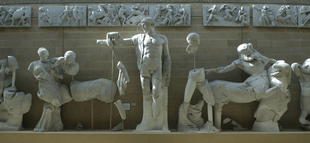 This brings us to the final, shortest section, on Devotional Language proper. Under the guiding lights of Shakespeare and Kierkegaard, Sloek contrasts Homeric passion with Christian love, touching on Socrates’ and Aristophanes’ speeches in praise of eros in Plato’s Symposium; the “metopes of the Parthenon and the gable scenes on the temple of Zeus in Olympus”; and even “the fairy tales of Tolkien” (128). Sure enough, all he says about the greatest mythmaker of the age is that “to the Greeks, life is, apparently, a battle against supernatural enemies in a far more primary sense than is the case in” Tolkien’s work, taking him as somehow representative, though whether in terms of his popular storytelling or his academic work on fairy tales is not totally clear, before hastening us along to “Heraclitus’ fragmentary statements about war.” Nevertheless Sloek is aware of his work, presumably recognizing a kindred spirit.