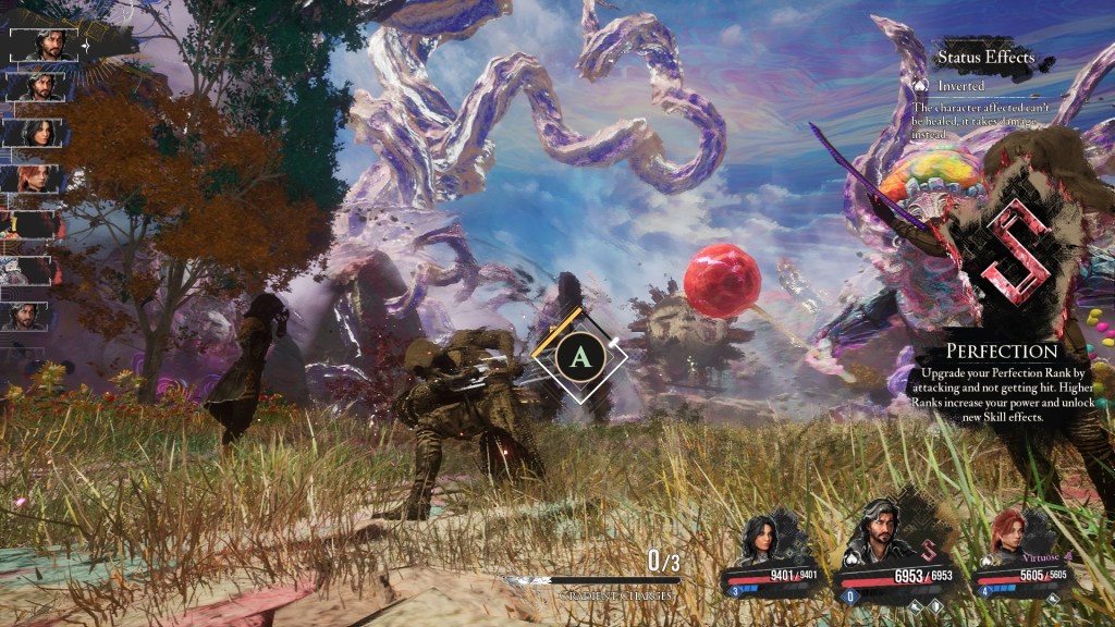 He’s also terrifying in combat. Gustave had a pretty simplistic battle system where he would accumulate charges by hitting enemies, only to release those charges in big hits with certain moves. Verso has a similar system: he builds his “rank” with multiple hits, which multiplies his damage and enables bonus abilities on moves with a matching rank. But each time he takes a hit, his rank decreases, making him capable of great damage, but only with the right timing.
