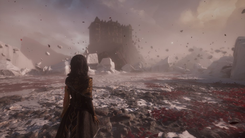 The cracks do start to show, though. Godlike as Maelle’s Act III powers become, she also asks Verso to help her find facsimile-Alicia, who apparently has hidden herself with the third Axon, at the top of a fantastically-high and rickety tower, only reachable now that Esquie can fly. After a long, laborious journey up the tower, Maelle and Alicia do confront one another, and Alicia asks Maelle for death. Maelle gommages her—and learns to use the skill in battle, too. But this scandalizes Verso—couldn’t she have waited until he said goodbye? Maelle assures him, though, that this is what Alicia wanted.