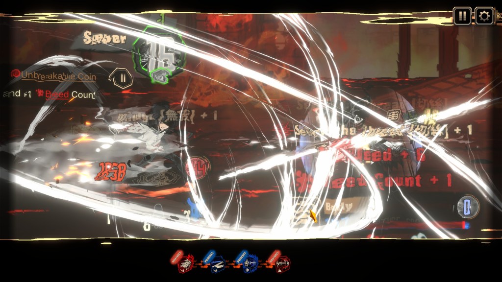Ryoshu, monomaniacally obsessed with finding her only-beloved daughter, accidentally kills her in her lust for vengeance—that’s the kind of serious character development that pitches her way out of the game’s gacha framework. The game even addresses this—you literally lose control of Ryoshu for the duration of the next battle because she has turned into a mindless destructive (and self-destructive) force. Dante even muses that she might very well leave the team altogether—she no longer has any reason tostay.