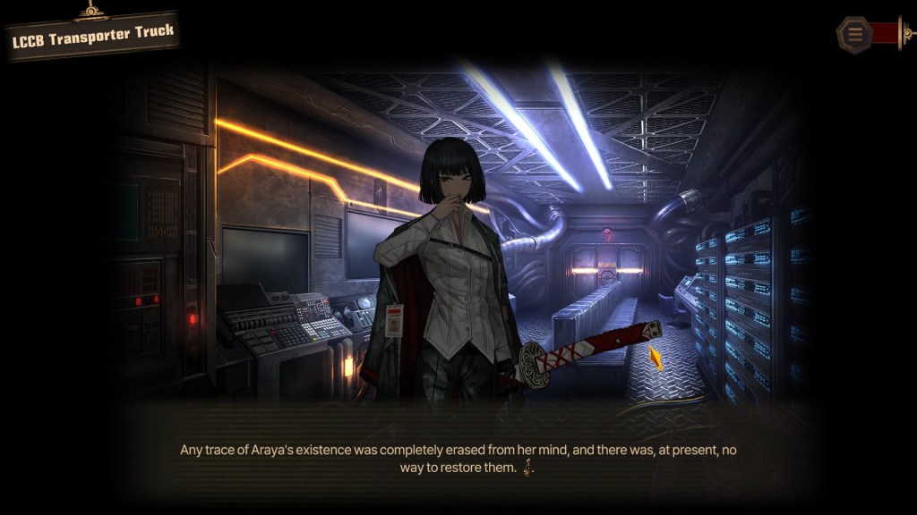 Adopted daughter, admittedly, but—as in “Hell Screen”—the only person Ryoshu cared about. It turns out that much of Ryoshu’s behavior is explained by her relationship with her daughter. Why is she called Ryoshu instead of Yoshihide?—her daughter mispronounced her name and it stuck. Why does she abbreviate words?—she and her daughter used to do this as a game (noteworthy, then, that Sinclair, the most childlike sinner on the team, is the one who can translate). Why did Ryoshu betray her mentors and escape the House of Spiders?—to protect her daughter from Ryoshu’s own fate, being turned into a weapon of the syndicates. Why did Ryoshu join up with Limbus Company?—to infiltrate the House of Spiders and rescue her daughter from the time-stasis safe where Ryoshu hid her. And why doesn’t Ryoshu use her sword out of its scabbard?—because each cut of the sword cuts away part of her memory (hence the amnesia) and she does not want to forget her daughter.